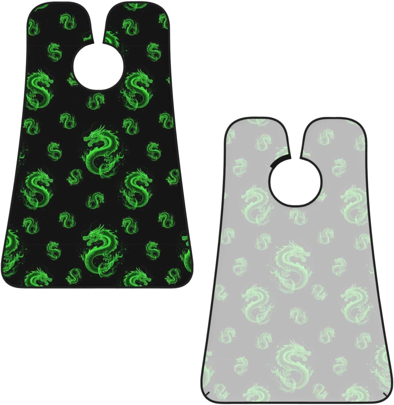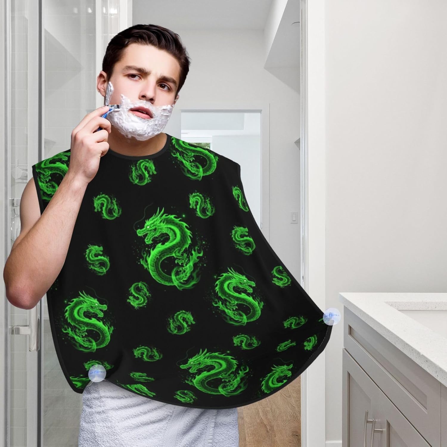 Beard Hair Catcher for Men, Waterproof Shaving Bib Apron Non-Stick, Trimming Tool for Dad Husband, Green Fire Flame Dragon Art Shave Bib
