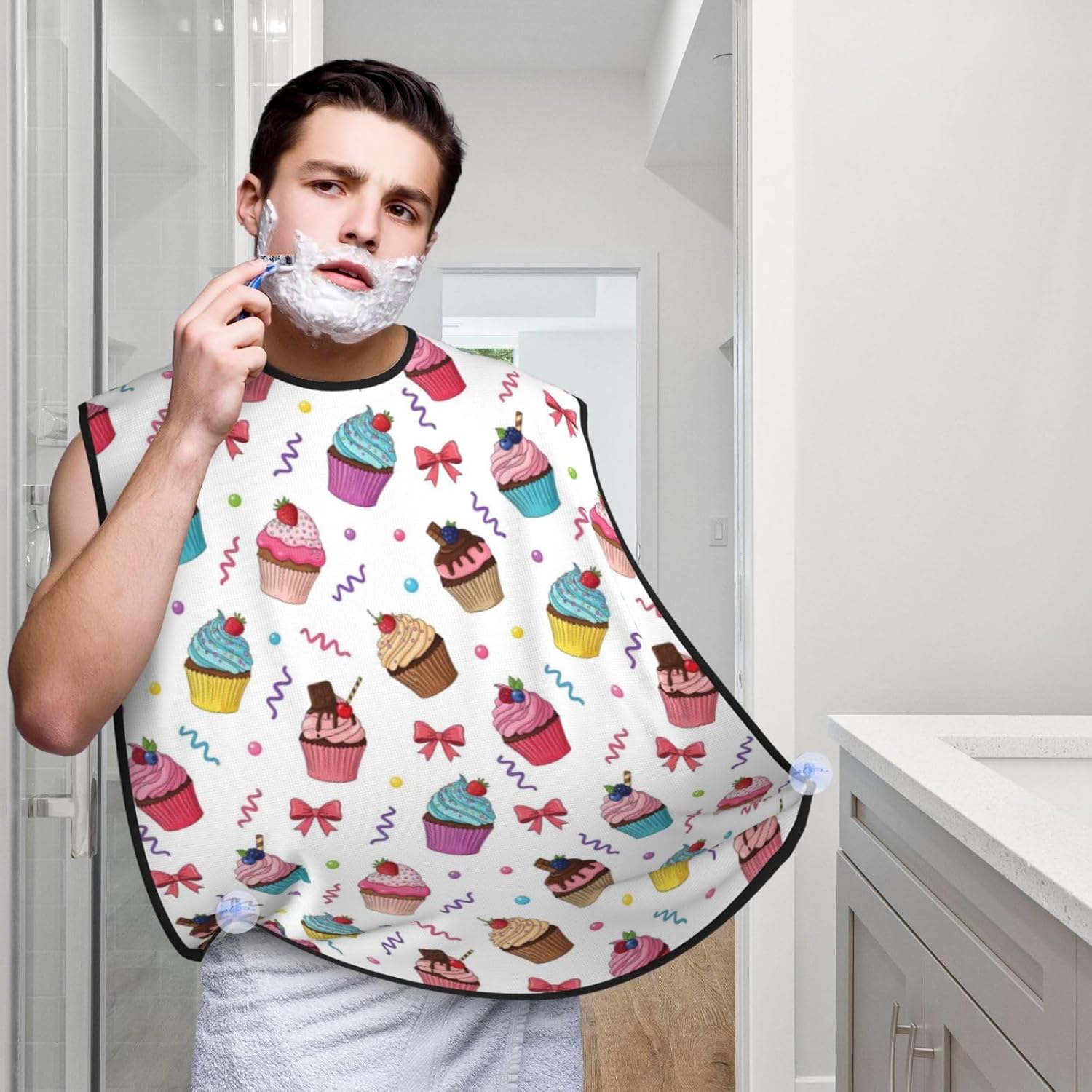 - Ideal Size & Secure Fit for Comfort: Generously sized at 42.1 in x 28.7 in with an adjustable neck (20.5-22.4 in) bib comfortably fits all body types. Includes 3 strong suction cups for stable mirror attachment and a PVC storage bag (including 1 carabiner) for compact organization