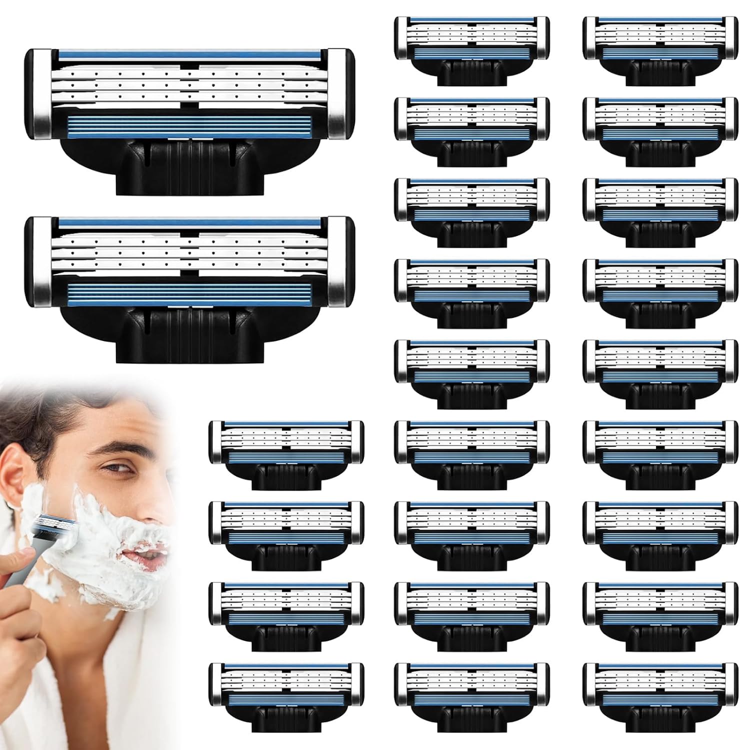 Razor Blades for Men - 24PCS Precision Compatible With Mach3 Razor Blades Refills for Men - Compatible With Mach 3 Razors, Dual Lubrication Blade for Close & Comfortable Shave.