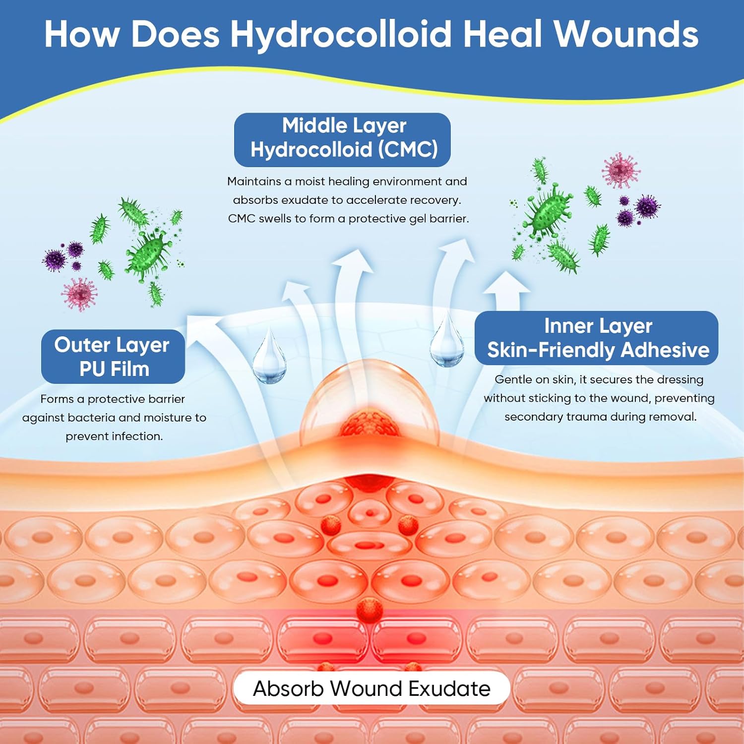 - 🩹Customizable Size & Multi-Purpose Use: The medical grade hydrocolloid roll can be cut to different sizes and shapes according to the wound. It is suitable for burns, mild bedsores, cystic acne, ulcers with mild exudate, preventing phlebitis, reducing subcutaneous congestion and edema after drip extravasation, as well as daily care for scratches, blisters, cuts, and dermatitis
