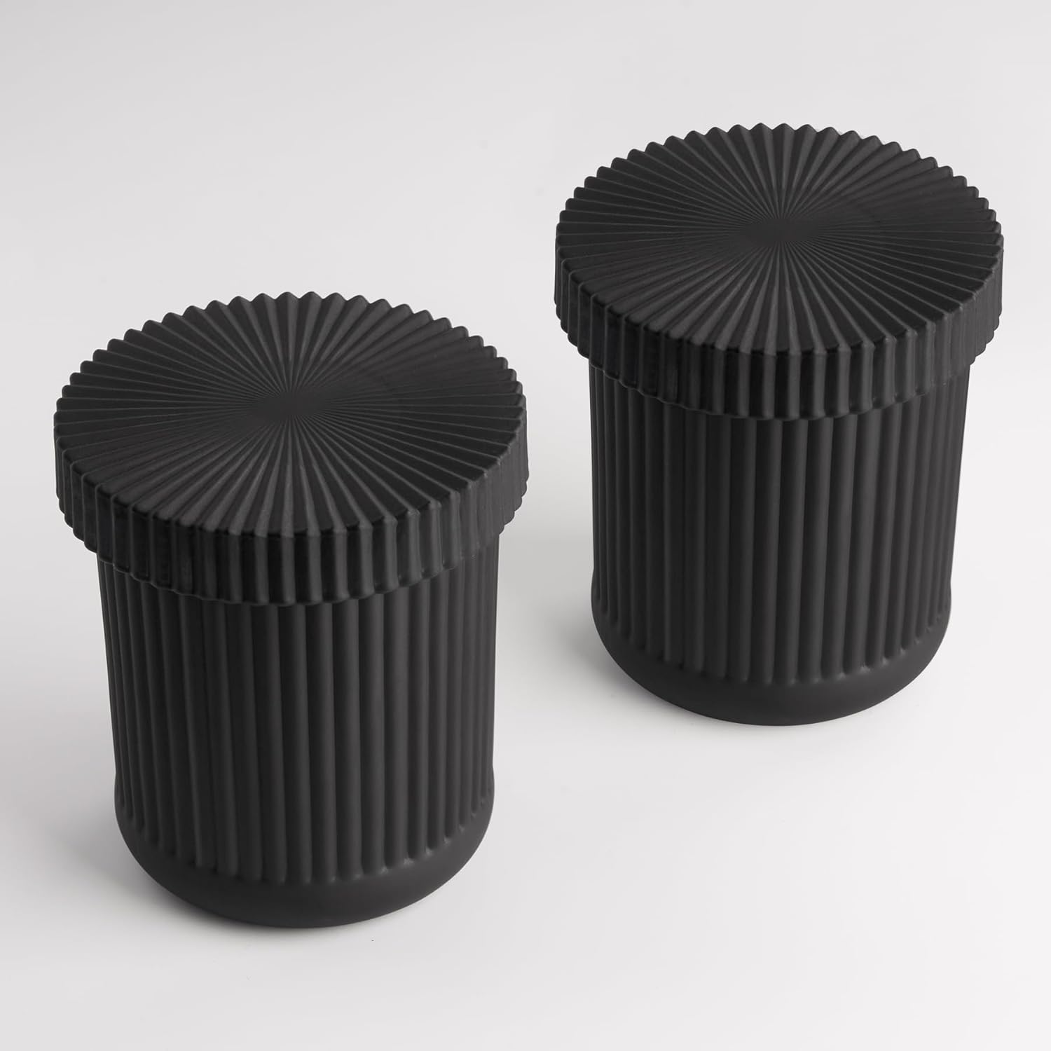 Glass Bathroom Organizer Set for Men, 2 Pack Bathroom Accessories, Bathroom Decor for Cotton Swabs, Cotton Balls, Pads, Floss Picks – Husband Birthday Gift Ideas, Gifts for Men(Black)