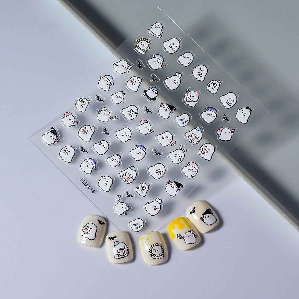 Halloween Nails Stickers White Ghost Nails Sticker 3D Embossed Cute Ghosts Self Adhesive Sticker Nail Decals Ghost with Hat Nail Art Decal Halloween Decals for Nail DIY Manicure 1Sheet