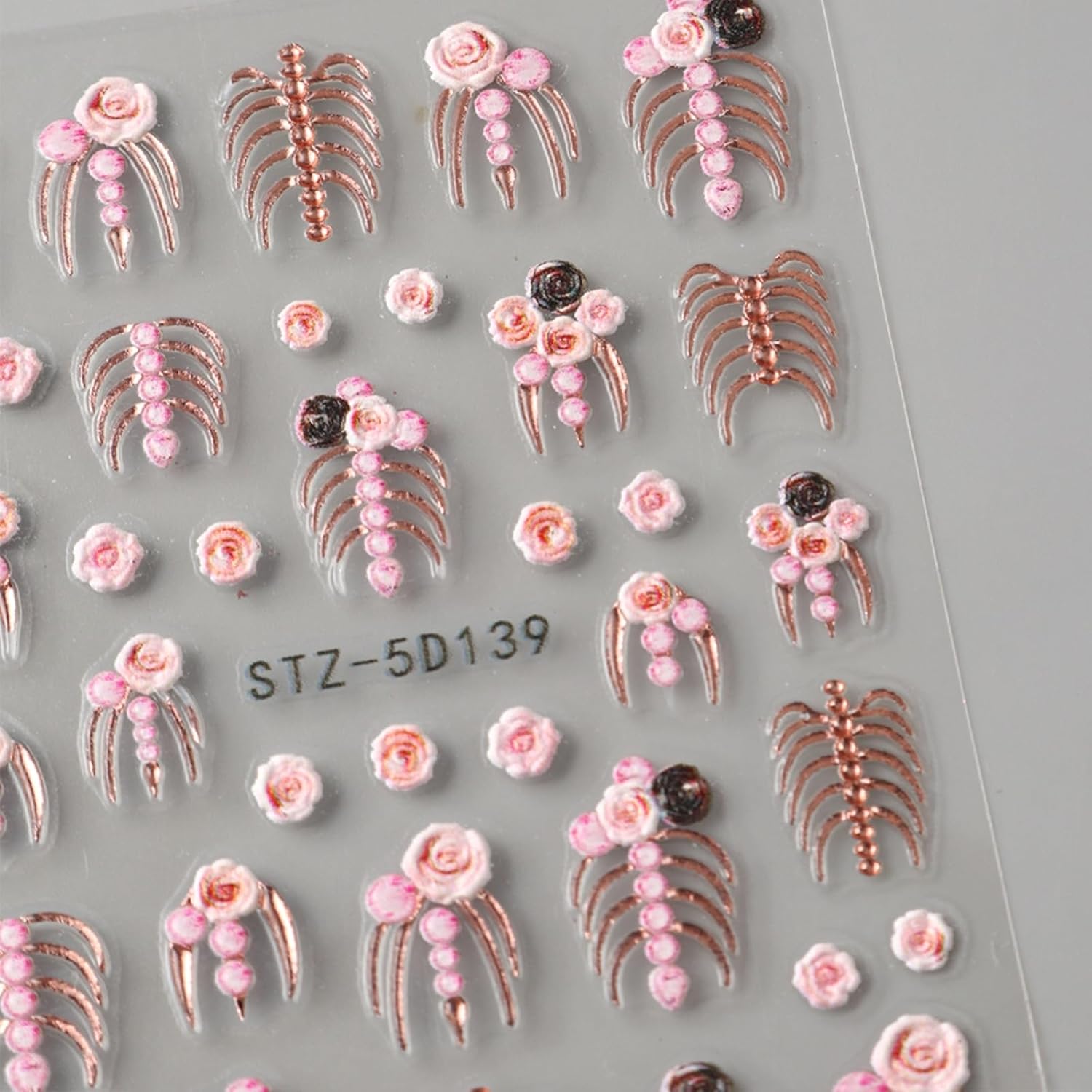 2Pcs Halloween Nail Art Stickers 5D Embossed Halloween Nail Decals Gold Pink Skeleton Bone Rose Blossom Pattern Nail Designs Stickers Skull Nail Supplies for Women Manicure Tip Decorations Accessories