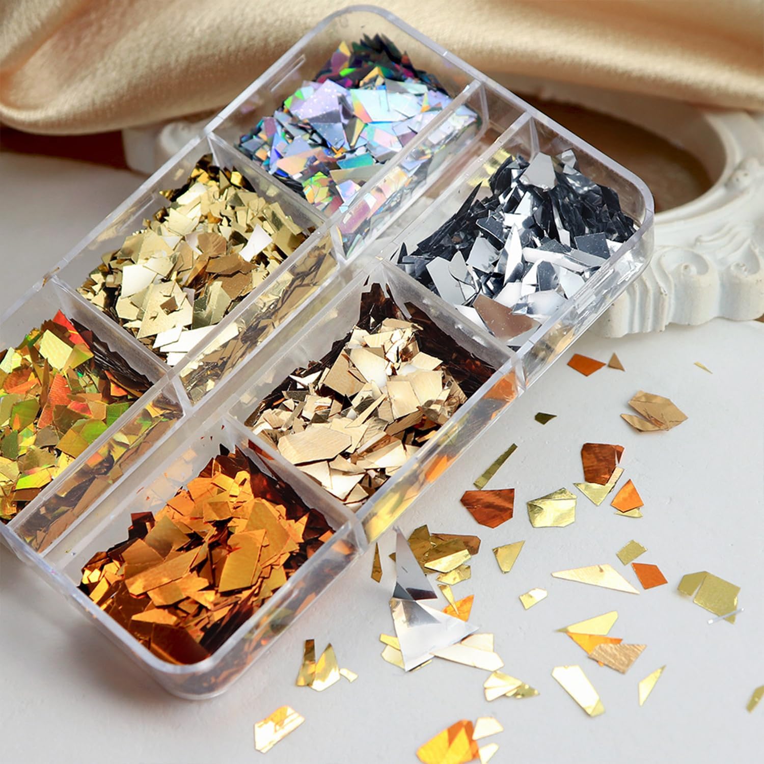 - Multiple Uses: Multifunctional glitter nail sequins can be used on nails, the face, and any part of the body as body glitter to give you more sparkling effects. Especially suitable for parties, Thanksgiving and weddings, etc. And can be used as decoration in phone cases, books, wallets, DIY crafts, etc
