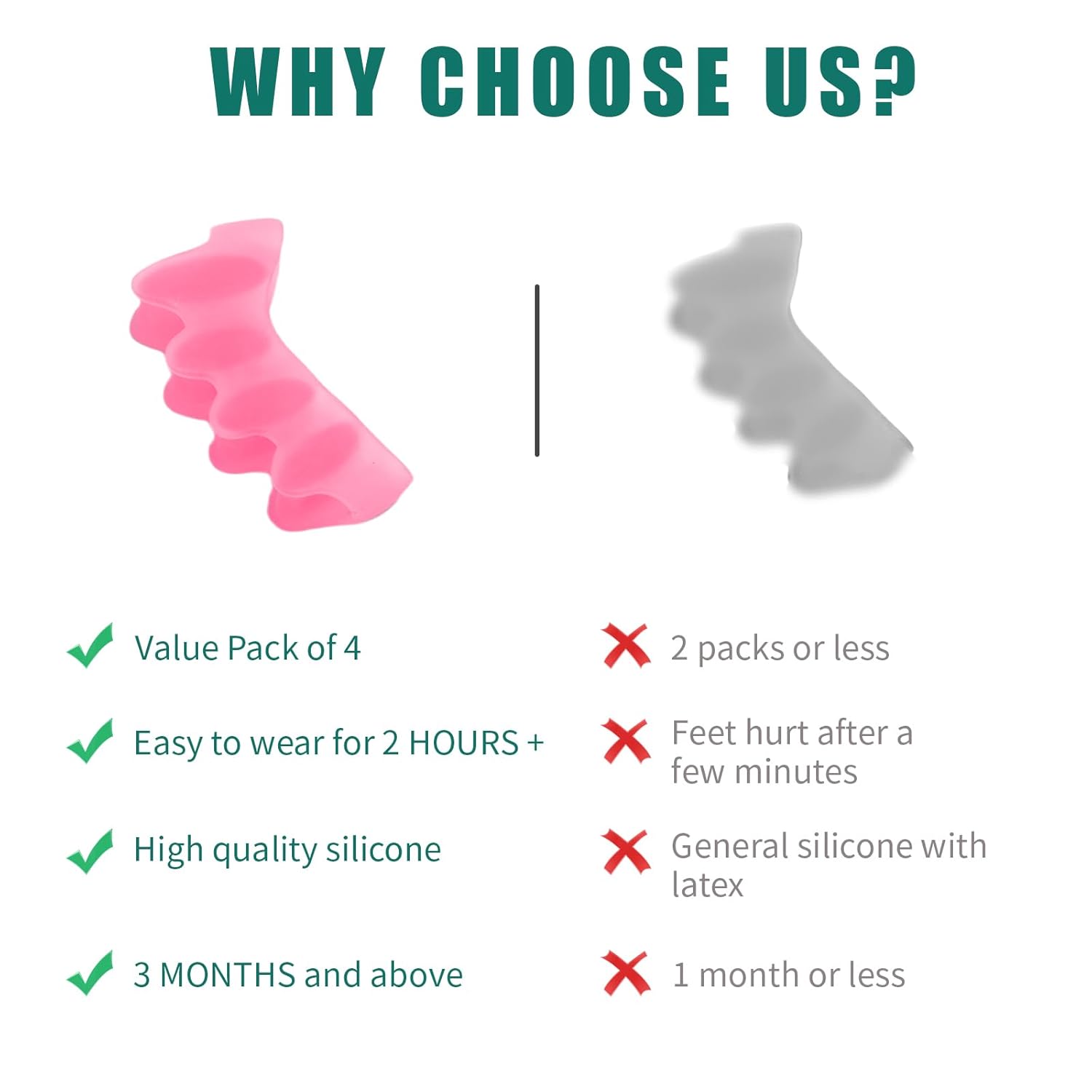 - 👣Widely Applicable: Our toe separators help maintain and restore the natural shape of toes and feet while enhancing balance, flexibility, and mobility during physical activities. Designed for all-day wear, they can be used barefoot, with socks, or inside shoes. Perfect for workouts, yoga, pedicures, or simply relaxing.