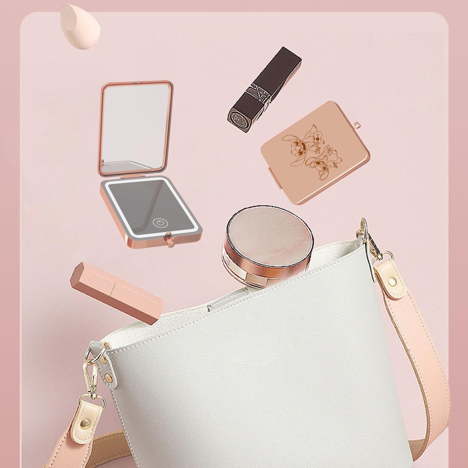 - 【Portable Design】: Compact handheld makeup mini mirror fits easily into your pocket, purse, handbag or makeup bag. Use it anytime, anywhere,travel essentials.