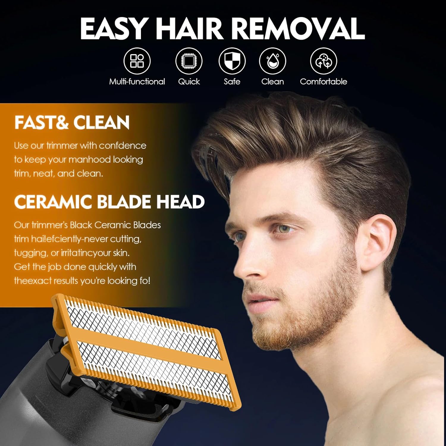 - Complete Grooming Set – Get everything you need in one kit: 4 stainless steel dual-sided replacement blades plus 3 guide combs (1/3/5mm) for versatile trimming.