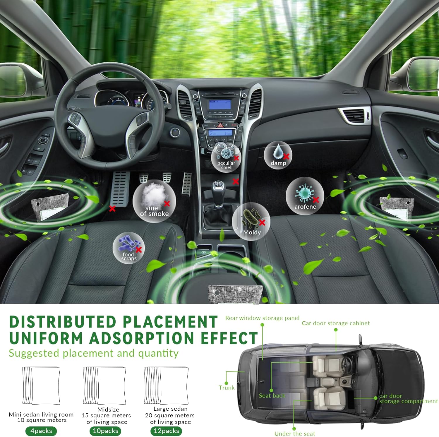 - ODOR ELIMINATOR FOR CAR. Pop a couple of our charcoal odor absorbers for car in your vehicle. After a few days these car deodorizers will have your ride smelling sweet! Use more car odor removers for bigger cars.