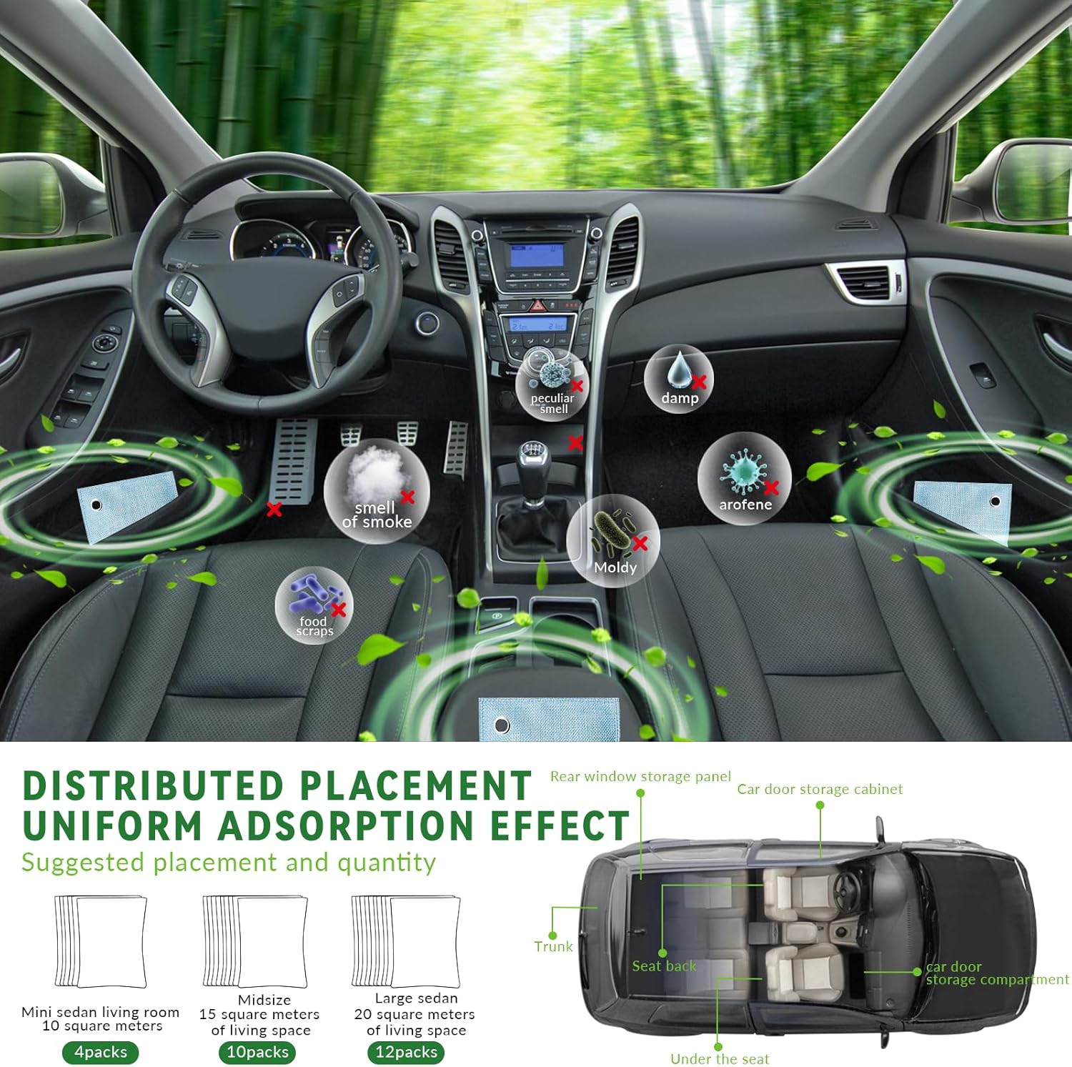 - ODOR ELIMINATOR FOR CAR. Pop a couple of our charcoal odor absorbers for car in your vehicle. After a few days these car deodorizers will have your ride smelling sweet! Use more car odor removers for bigger cars.