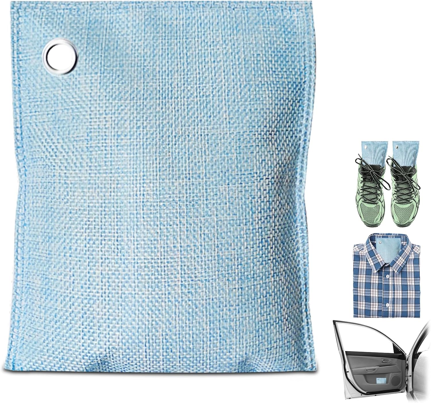 4 Pack charcoal odor absorber,Bamboo Charcoals Air Purifying Bag Charcoals Deodorizer Eliminator for Strong Odors in Car, Closet, Shoe, Basement (100G*4 Pack Light Blue, Unscented)