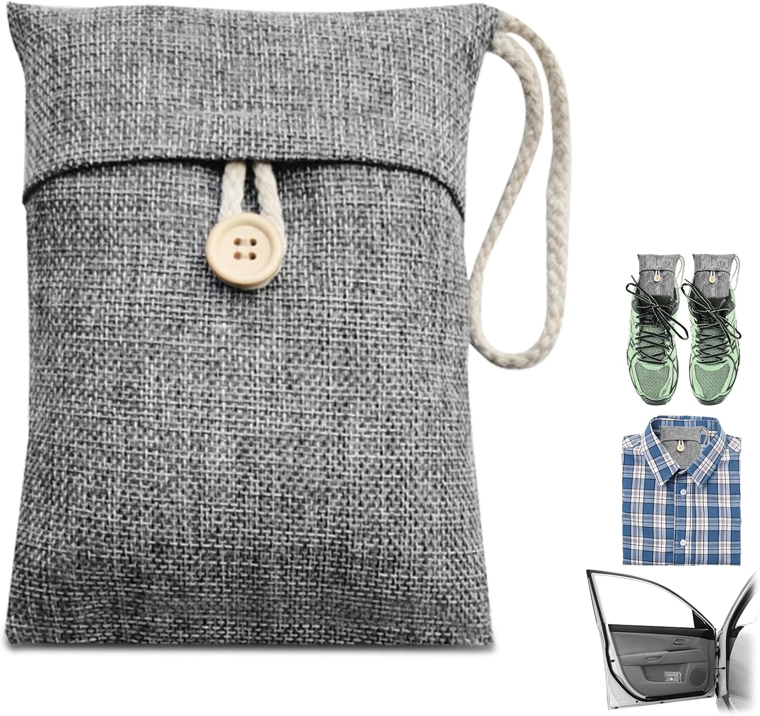 - 4 CHARCOAL DEODORIZER BAGS . Our bamboo charcoal bag musty smell eliminators are the perfect size to place wherever you have a bad smell: closet, car, shoes, gym bag, basement, pet areas.