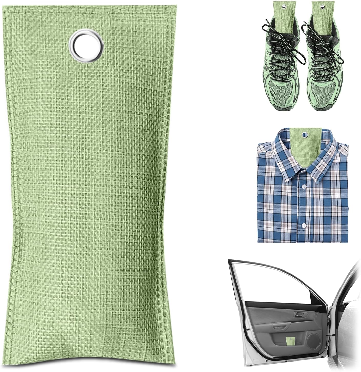4 Pack charcoal odor absorber,Bamboo Charcoals Air Purifying Bag Charcoals Deodorizer Eliminator for Strong Odors in Car, Closet, Shoe, Basement (75G*4 Pack Light Green-2, Unscented)